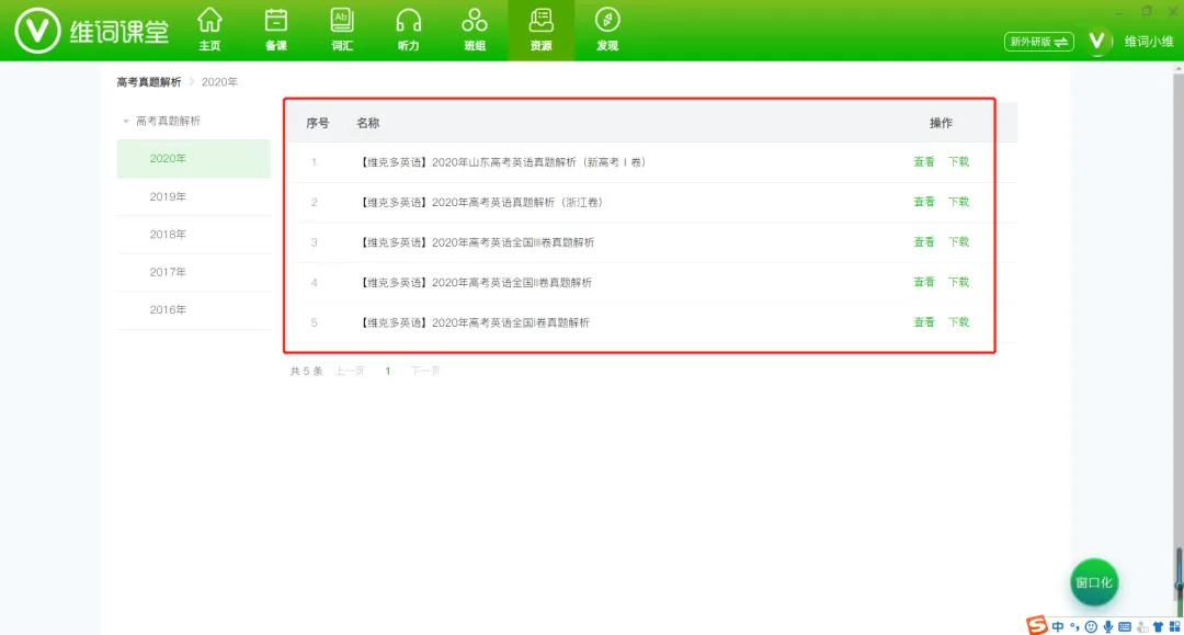 维词课堂此次更新,主要专注于资源区功能的优化,根据教学需求对教师核心资源进行分类规划,教师可针对不同教学场景,在资源区查看或下载自己所需资料,海量资源,全情为教师奉献。