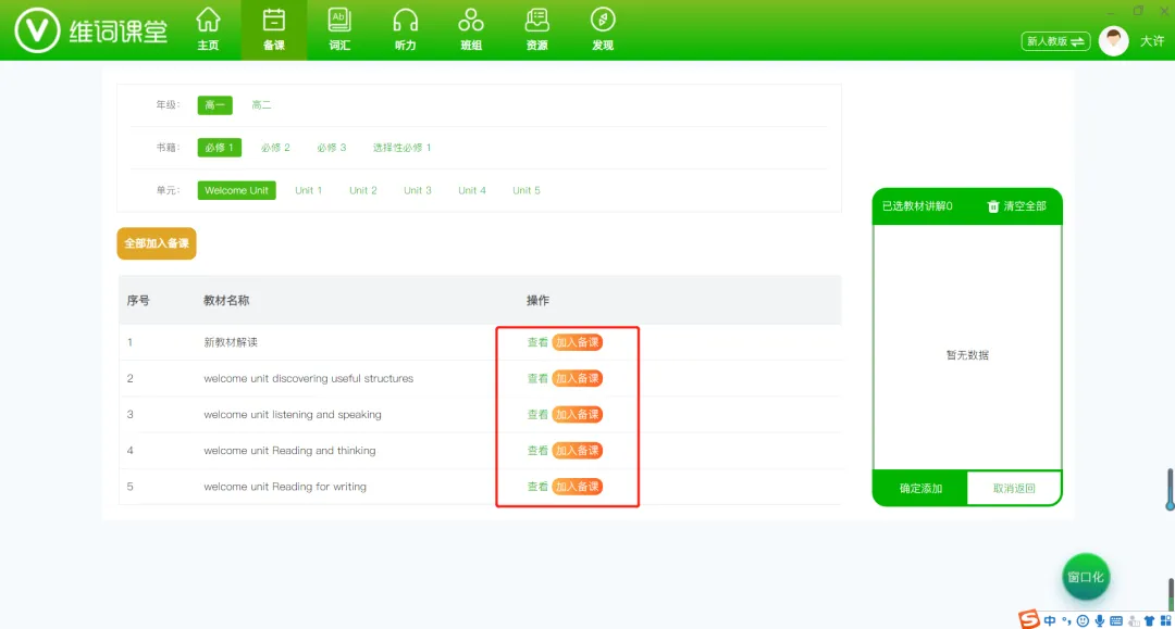备课区部分内容截图展示: