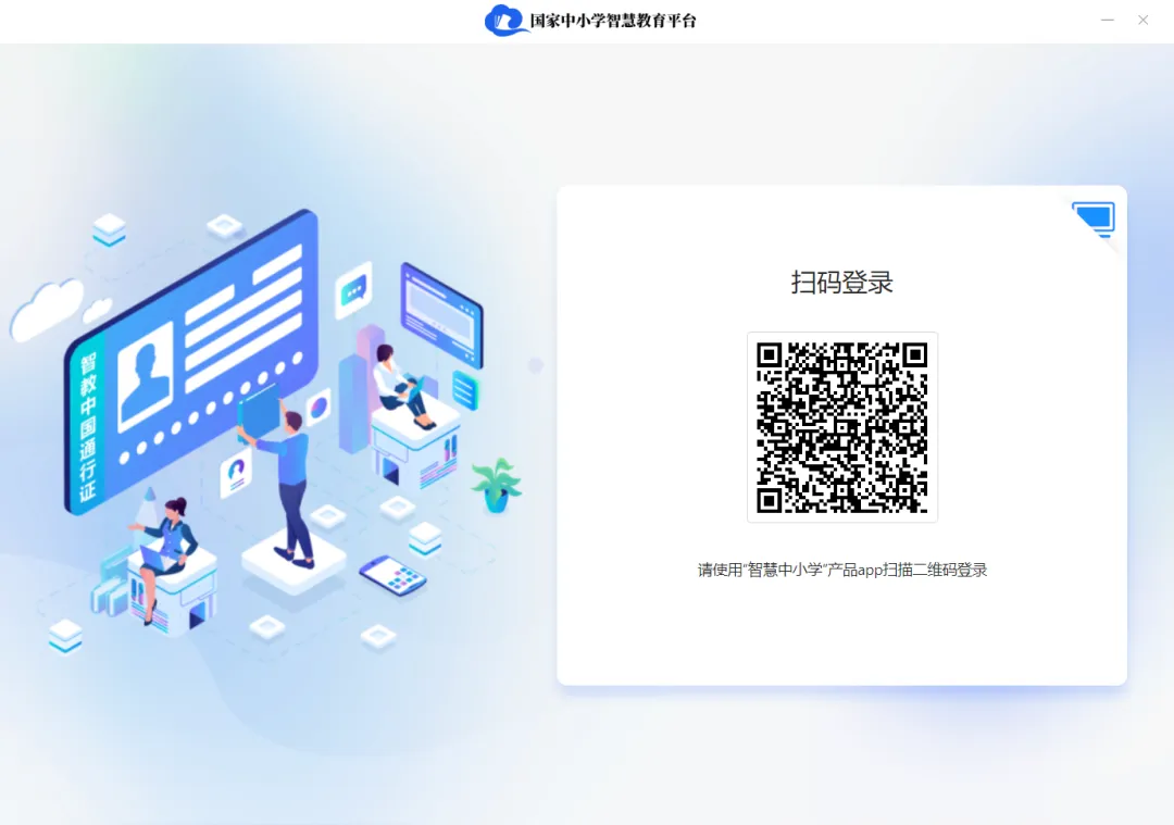 教师、家长、学生:完成注册后可通过智教中国通行证登录,也可以点击右上角二维码使用智慧中小学APP扫码登录。