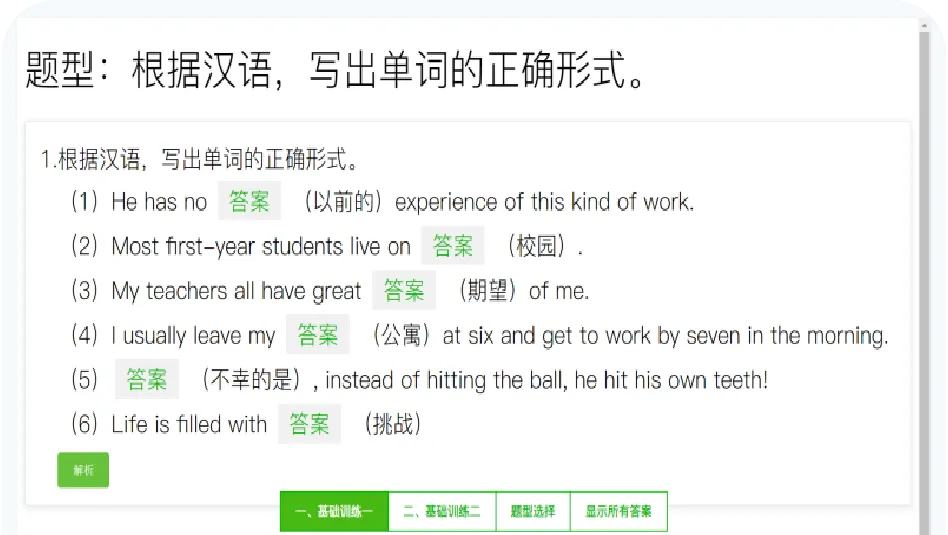 • 词汇备课:教材讲解、词汇讲解、词汇进阶
