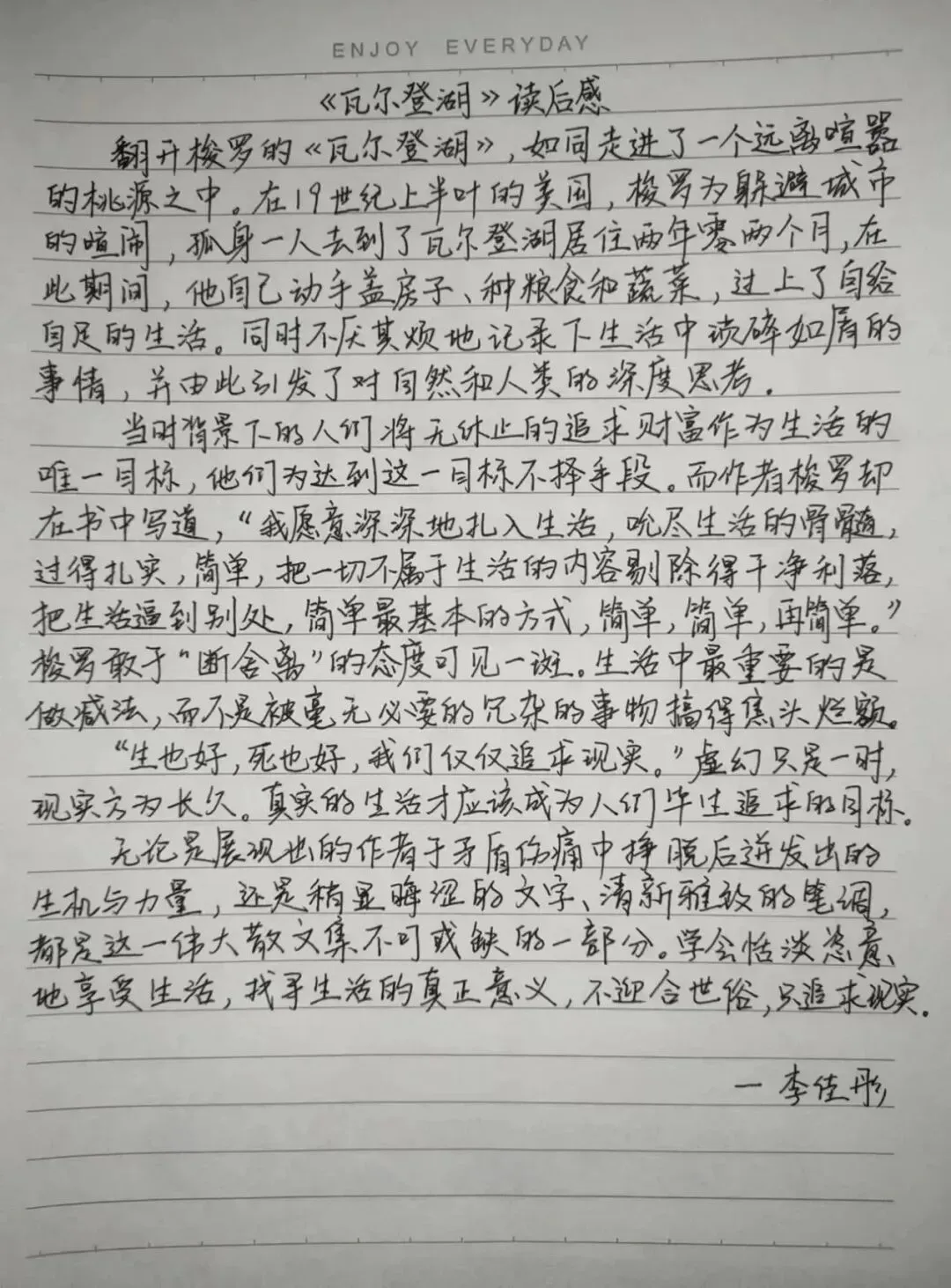 软件工程2207班 李佳彤 《瓦登尔湖》