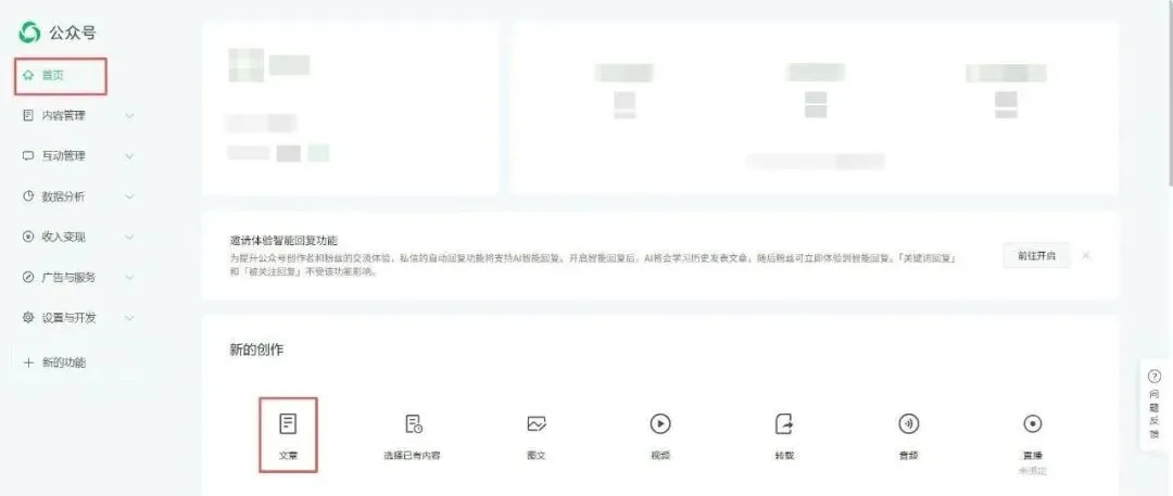 登录成功后,进入公众号首页,在页面里找到「文章」选项,点击进入,就能看到文章编辑的界面了,这一步很简单,跟着页面提示走就不会错。