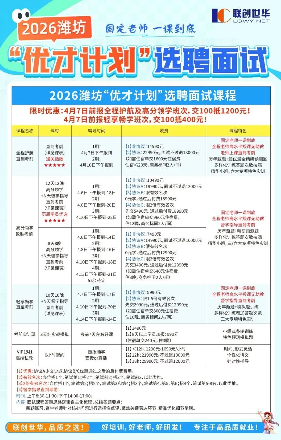 岗位匹配——靶向施教,立足潍坊特色“针对性”辅导专岗专训——教学内容、训练素材与点评标准深度定制好培训,多次数小组专训+实战轮训+全程督学三位一体!好老师,“良心老教师”一课到底,专业专助!好研发,教学部精研讲义直击面试核心,屡屡命中!