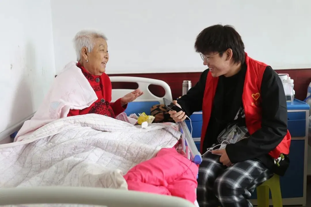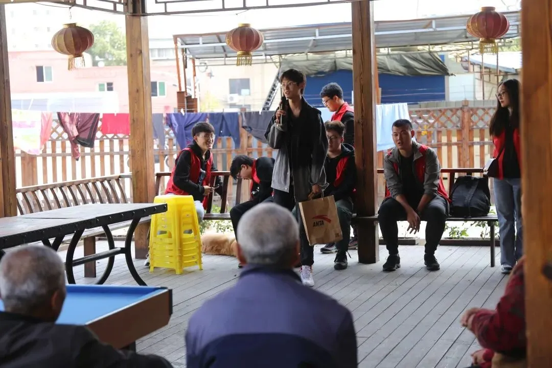 志愿者们到达养老院便立刻投入到志愿服务中,大家积极地与老人聊天,关心他们的身体状况,倾听他们的故事,了解老一辈人的成长与历史,老人们也愉悦地和志愿者们分享人生经历。志愿者的关心照顾也让老人们感受到了似家人般的温暖。
