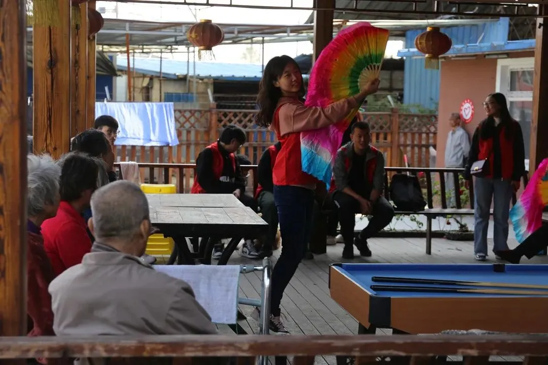 在志愿活动的最后,志愿者们为老人表演了精心准备的节目,并邀请老人们一起唱歌舞蹈,院子里传来了阵阵欢声笑语,老人们都露出了温暖的笑容。
