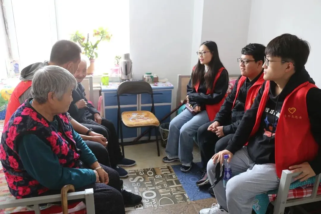 志愿者们到达养老院便立刻投入到志愿服务中,大家积极地与老人聊天,关心他们的身体状况,倾听他们的故事,了解老一辈人的成长与历史,老人们也愉悦地和志愿者们分享人生经历。志愿者的关心照顾也让老人们感受到了似家人般的温暖。
