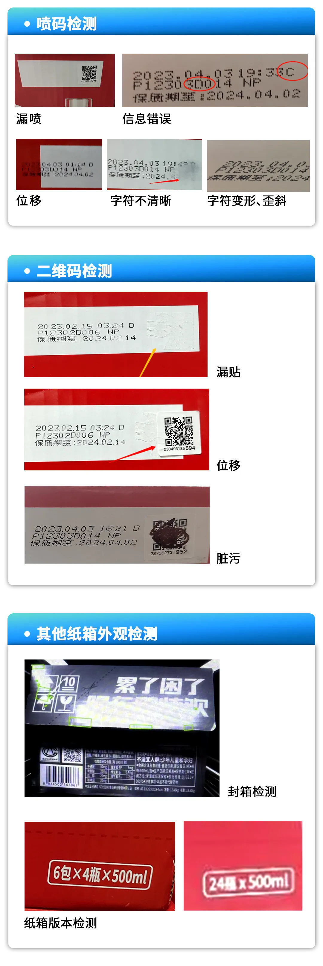 漏贴、模糊、脏污、位置偏差