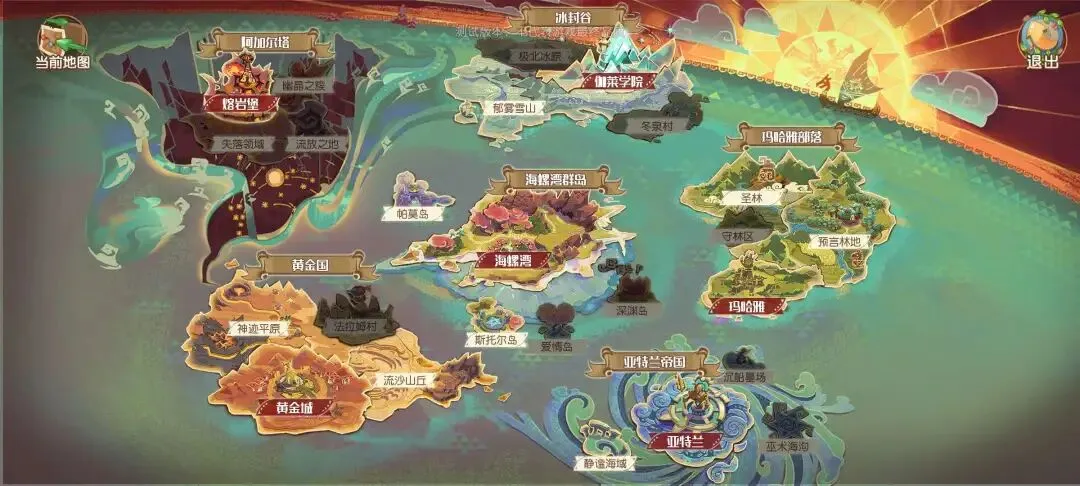 从初始之地绿意盎然的玛哈雅部落,到如梦似幻的水下都市亚特兰帝国、碧波荡漾的海螺湾群岛、黄沙曼舞的黄金国,再到炽岩流滚的阿加尔塔和冰雪永驻的冰封谷。如此丰富且风格化极强的场景塑造,是当前大部分同类产品都无法提供享受。