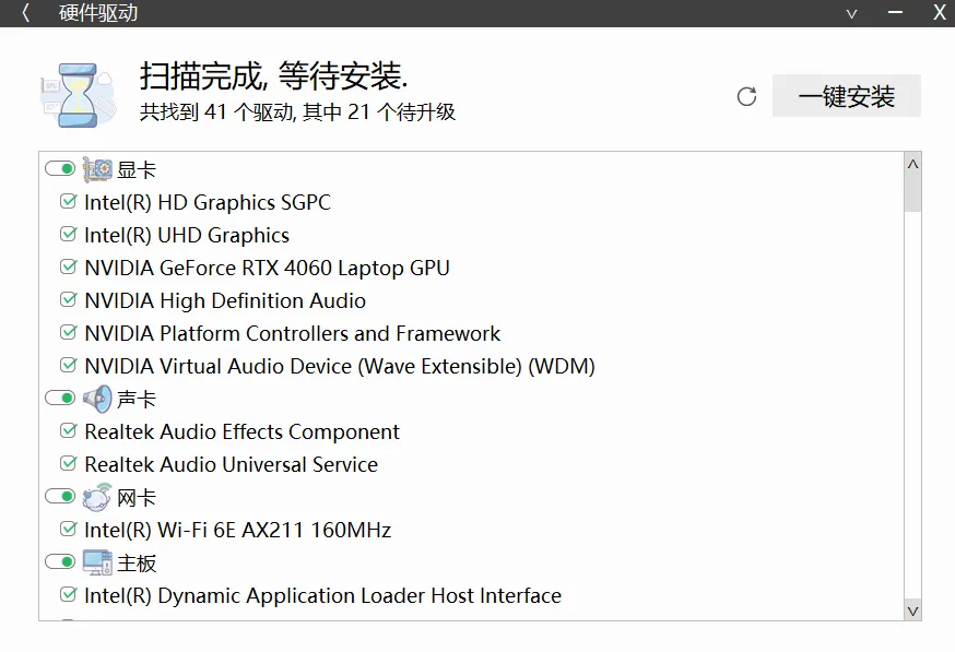 不过我用得最多的其实是另外一款驱动软件——万能驱动,因为它能离线使用,能一键安装,非常方便!