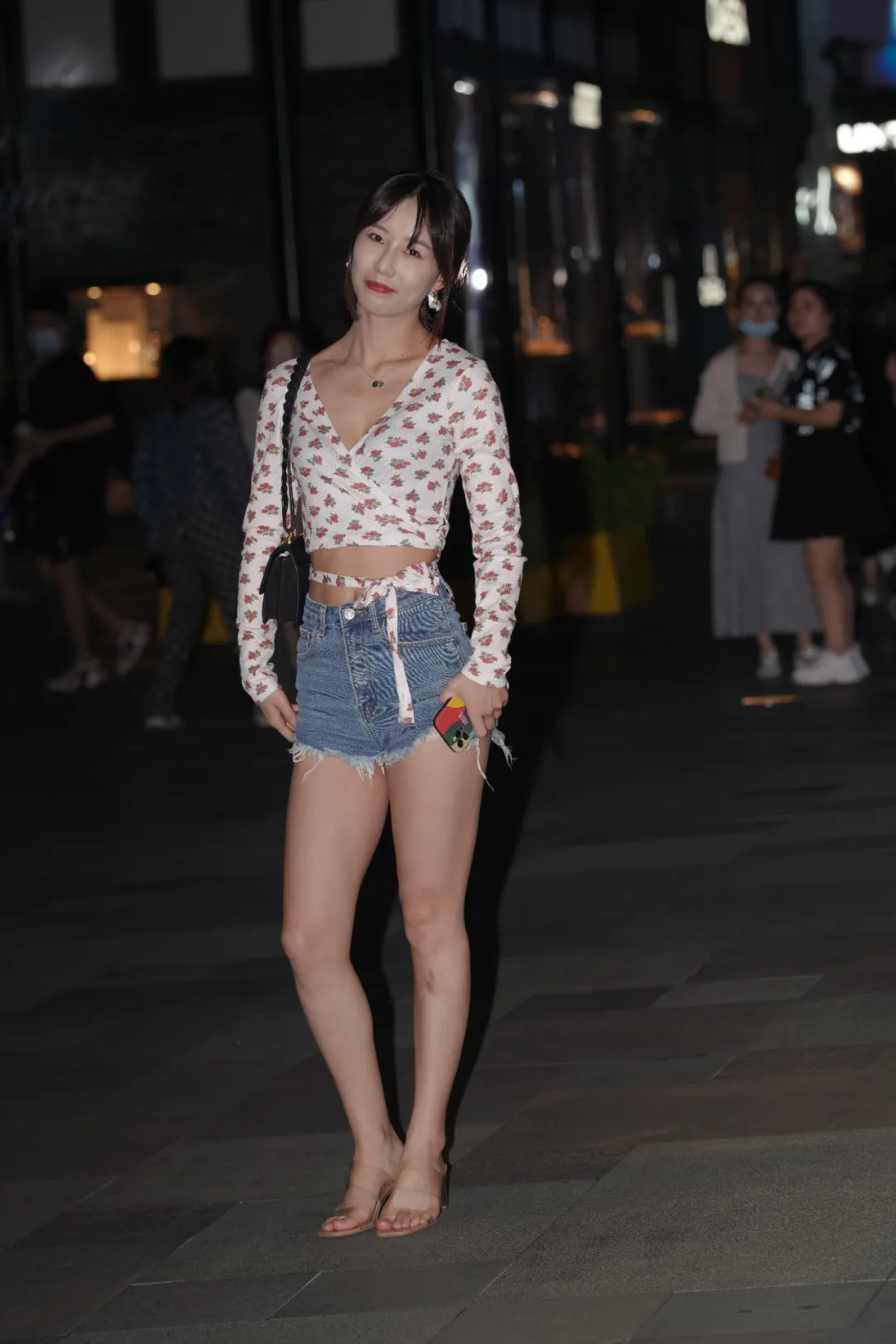 下装搭配经典浅蓝色高腰牛仔短裤,毛边裤脚自带随性街头感,高腰设计把腿长直接拉满,视觉上秒变大长腿,修身版型还能修饰腿型,把腿部线条衬得又细又直,和碎花衫的温柔感完美适配,活力感拉满。