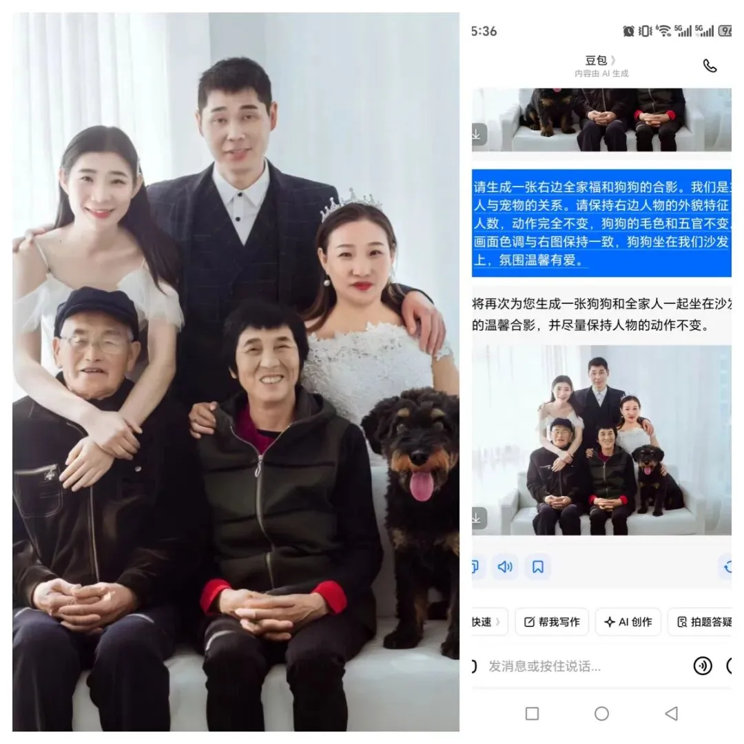奶奶与相伴十年的狗狗相继离去,用 AI 合成全家福,让思念有了模样,他们从未真正离开。