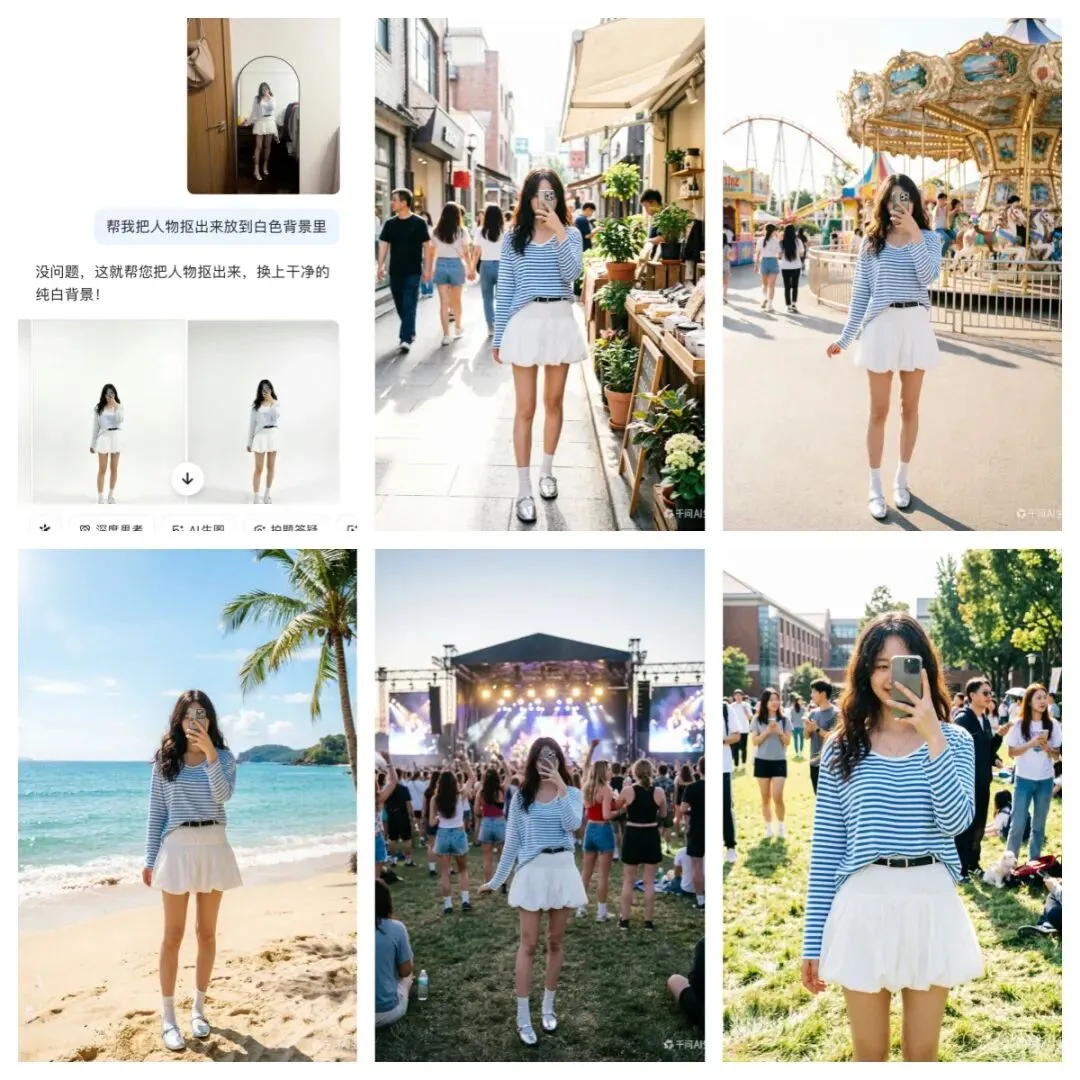 AI 智能分析穿搭并适配多场景,生成多组效果图,松搭出高分照片。