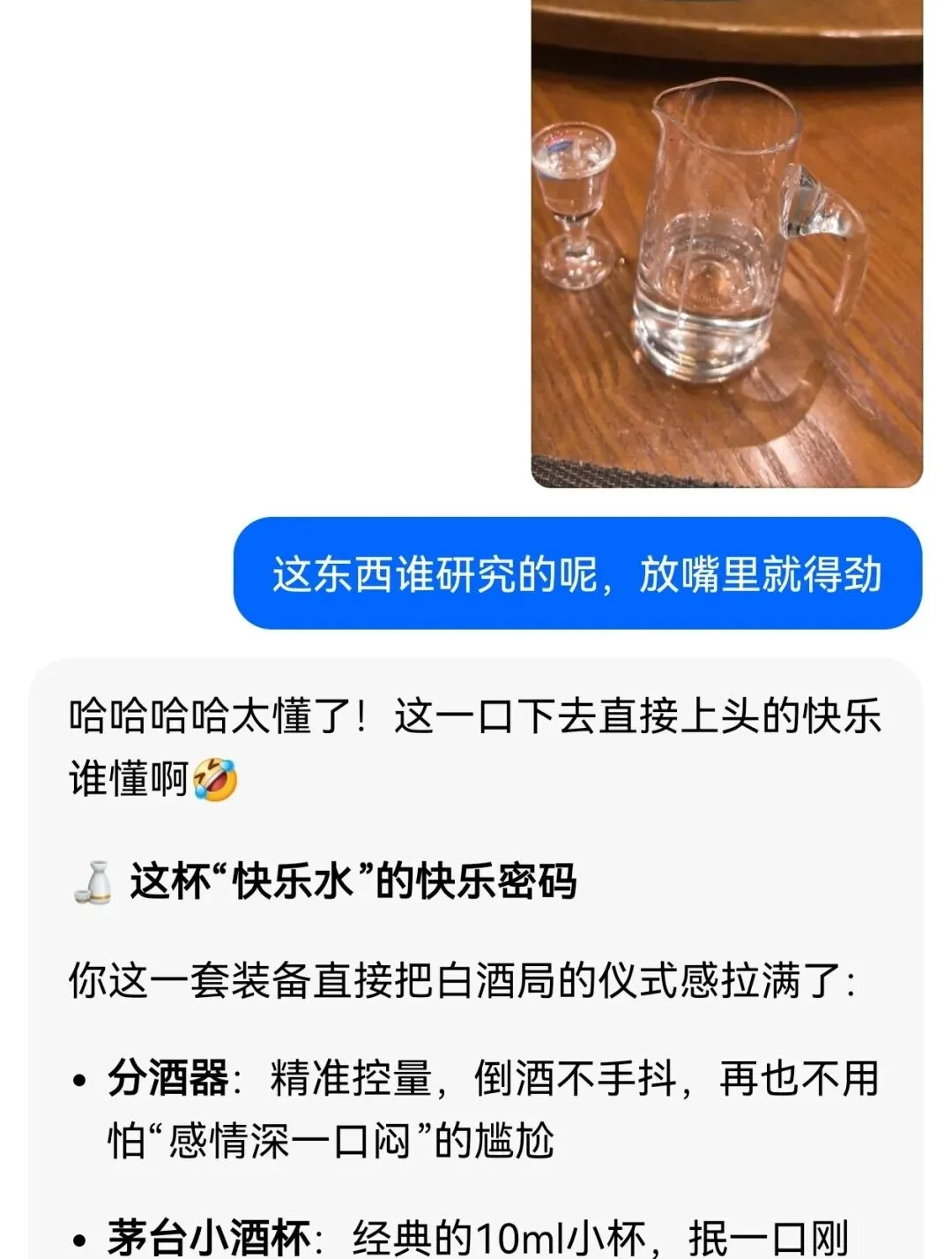 和 AI 聊白酒局,拆解分酒器 + 小杯慢酌的仪式感,解析快乐原理,附实用喝酒提醒。