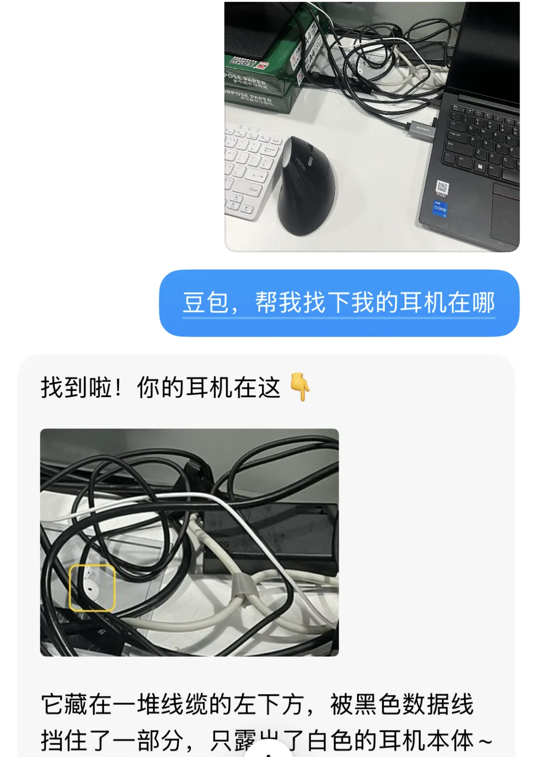 东西丢在杂乱环境找不到?AI 帮你精准定位找物,线缆堆里的耳机一眼锁定,找物效率拉满!