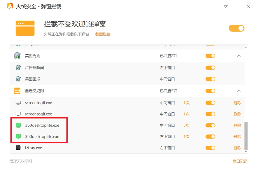 看看我用截图拦截把360桌面助手的弹窗给拦截掉了!