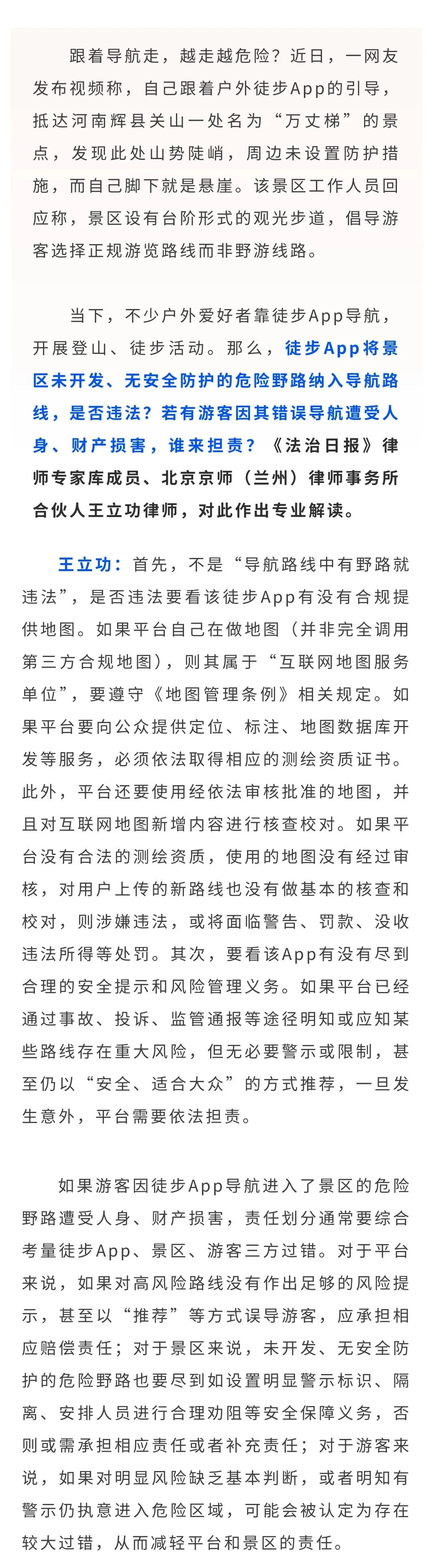 以案释法 | 被徒步软件导航到悬崖边,若发生意外谁担责?