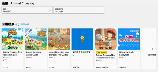 虽然法务部出手了,但现在在微软商店里面搜Animal Crossing,还是能检索出好几个山寨游戏。