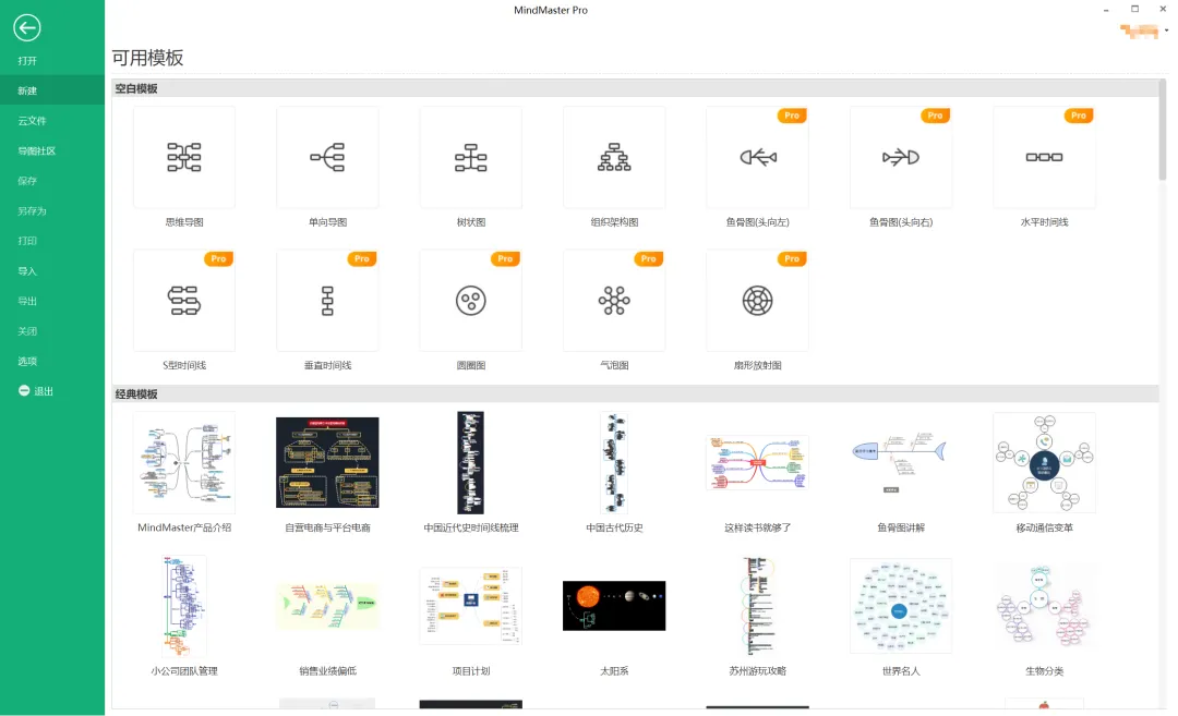 软件里有很多模板,这些模板中有些是Pro模板,这些模板全都免费可用!