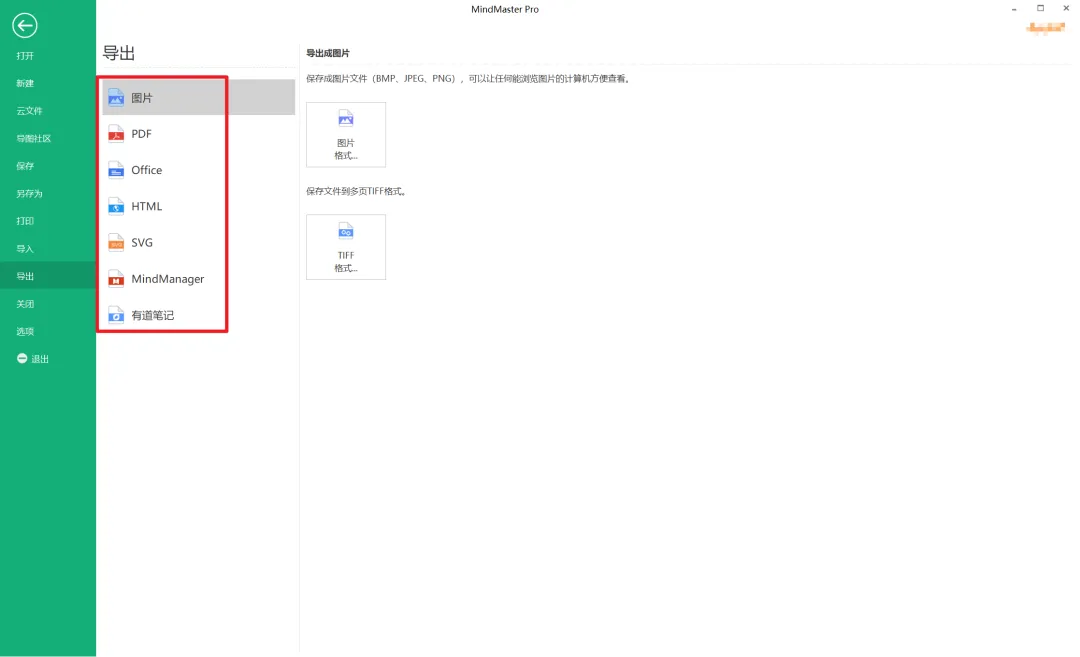 支持导出图片、PDF、Office、HTML、MindManager和有道笔记,而且导出也是免费的喔~~~