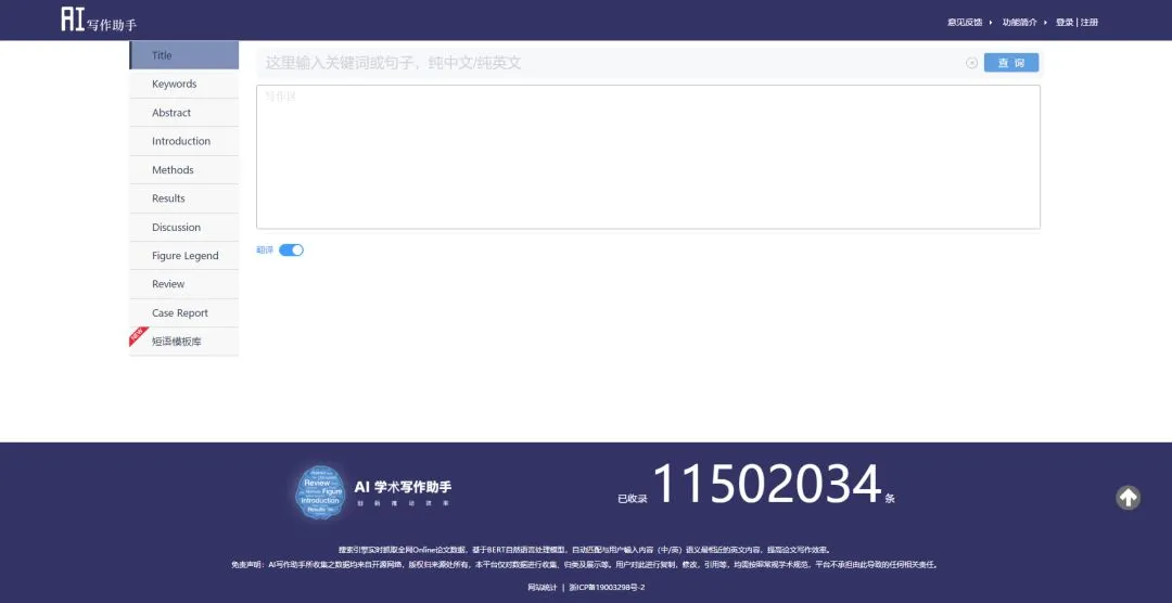 回到我们之前重点介绍的神器网站“AI学术写作助手”。