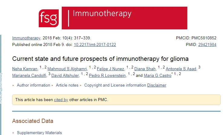 比如,我们发现第三条和我们想要的意思很类似,那么直接就点击“Current state and future prospects of immunotherapy for glioma”