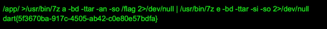 /usr/bin/7z a -bd -ttar -an -so /flag 2>/dev/null | /usr/bin/7z e -bd -ttar -si -so 2>/dev/null