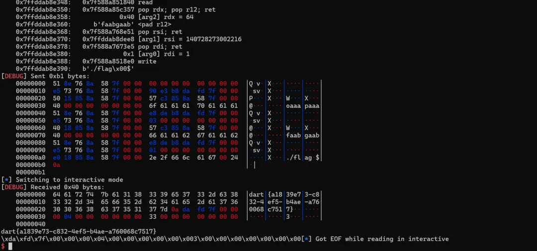 from pwn import *from pwnlib.util.packing import u64from pwnlib.util.packing import u32from pwnlib.util.packing import u16from pwnlib.util.packing import u8from pwnlib.util.packing import p64from pwnlib.util.packing import p32from pwnlib.util.packing import p16from pwnlib.util.packing import p8import psutil, timedef getProcess(ip,port,name):global pif len(sys.argv) > 1 and sys.argv[1] == 'r':# p = remote(ip, port,ssl=True) p = remote(ip, port)return pelse: p = process(name)return psl = lambda x: p.sendline(x)sd = lambda x: p.send(x)sa = lambda x, y: p.sendafter(x, y)sla = lambda x, y: p.sendlineafter(x, y)rc = lambda x: p.recv(x)rl = lambda: p.recvline()ru = lambda x: p.recvuntil(x)ita = lambda: p.interactive()slc = lambda: asm(shellcraft.sh())uu64 = lambda x: u64(x.ljust(8, b'\0'))uu32 = lambda x: u32(x.ljust(4, b'\0'))def gdbbug(cmd=''): gdb.attach(p,cmd) pause()