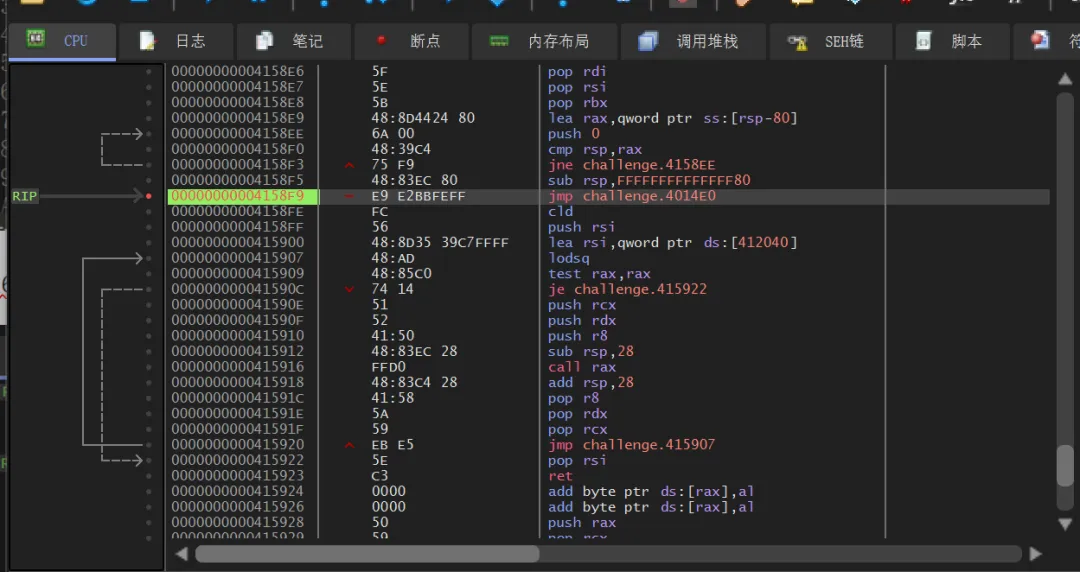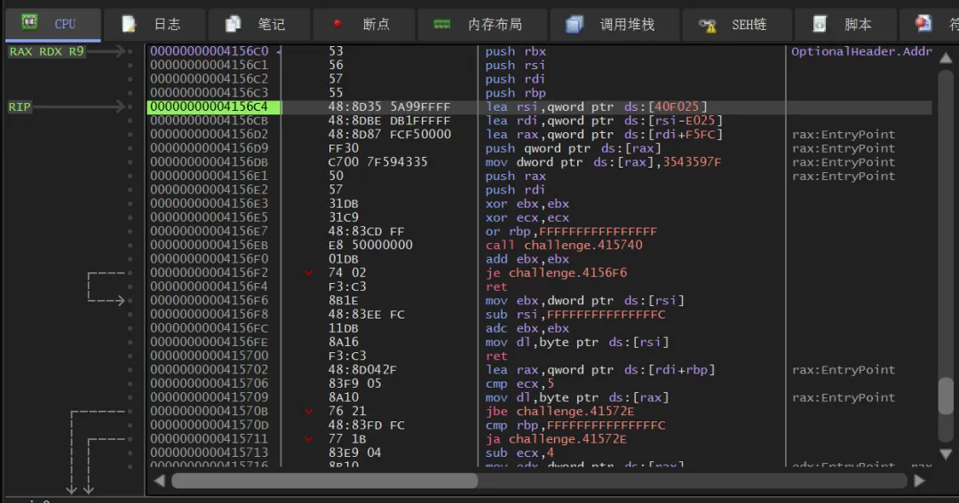x64dbg 手脱,此处在 rsi 打下硬件断点: