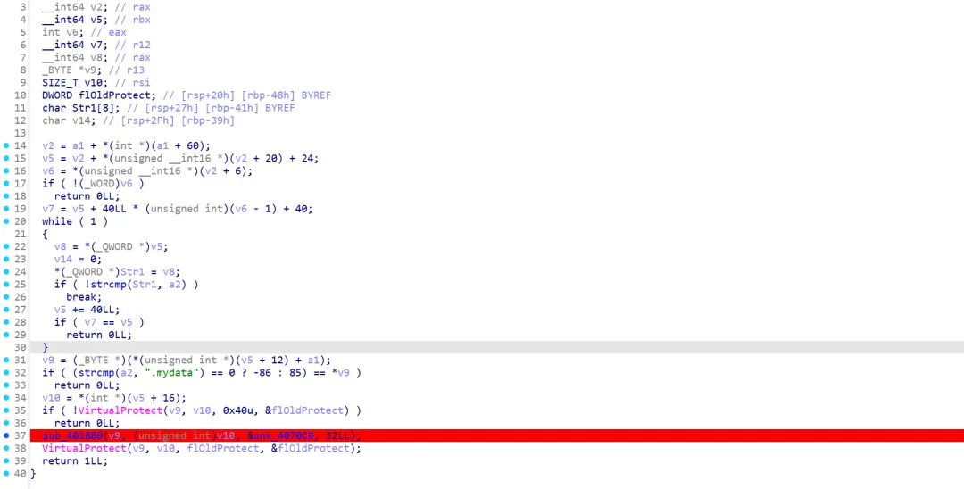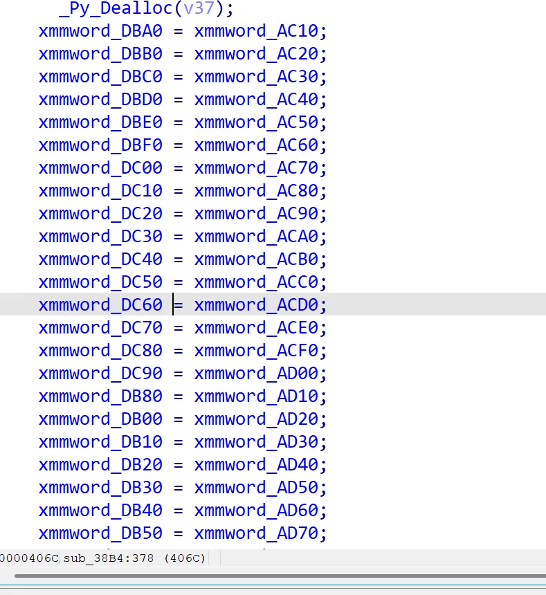 import base64def _oe(d, k1, k2, rn): raw = base64.b85decode(d.encode()) s = bytes(b ^ (k1, k2, rn)[i % 3] for i, b in enumerate(raw)).decode() out = [] for c in s: if c.isalpha(): base = ord("A") if c.isupper() else ord("a") out.append(chr((ord(c) - base - rn) % 26 + base)) elif c.isdigit(): out.append(str((int(c) - rn) % 10)) else: out.append(c) return "".join(out)custom = _oe("8<<BLok1UrR}_R>27yTmms1djUI&{(7Ls{Apm;c@eJQYZA-rTHu4po}aw559KBaUw?kHpDBVghrW#KRr", 83, 214, 17)standard = _oe("0fj{dfJO_COA?e)7n4^Mo>&>3T^^WT1BYWEqGTnZX)3I6F|~Czuy#AYdpNp$J-J~b;VEk7AYtVtX5cz}", 83, 214, 17)key_b64 = _oe("C7MAupdc5tRBM!52kv4Wmp~Hle`A4N5`t?5nObY+L~6Pz5wdF*y=E$zQv!xZ", 83, 214, 17)key = base64.b64decode(key_b64.translate(str.maketrans(custom, standard)))print(key.decode())print(key[:16].decode())分析代码后可以得知,加密逻辑在 crypt_core.so 里面,用 ida 打开 crypt_core.so