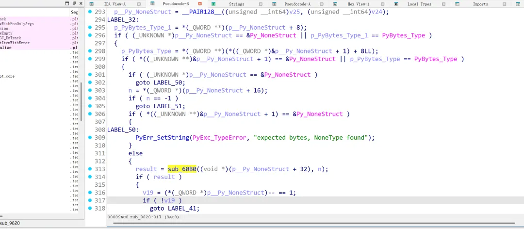 搜索 encode_data 字符串,我们可以找到 sub_9820(python 函数包装器):