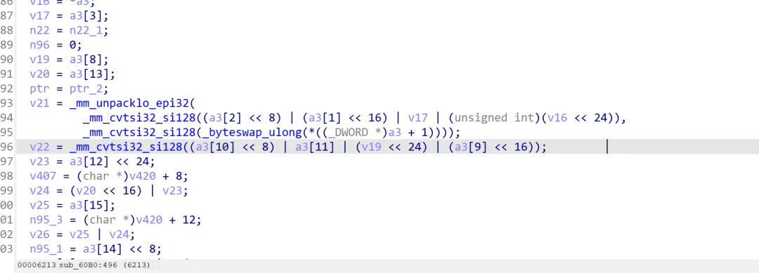 进一步分析 sub_60B0,从这段代码中可以明显猜出是 SM4 的逻辑(图二为本地存的 SM4 脚本)
