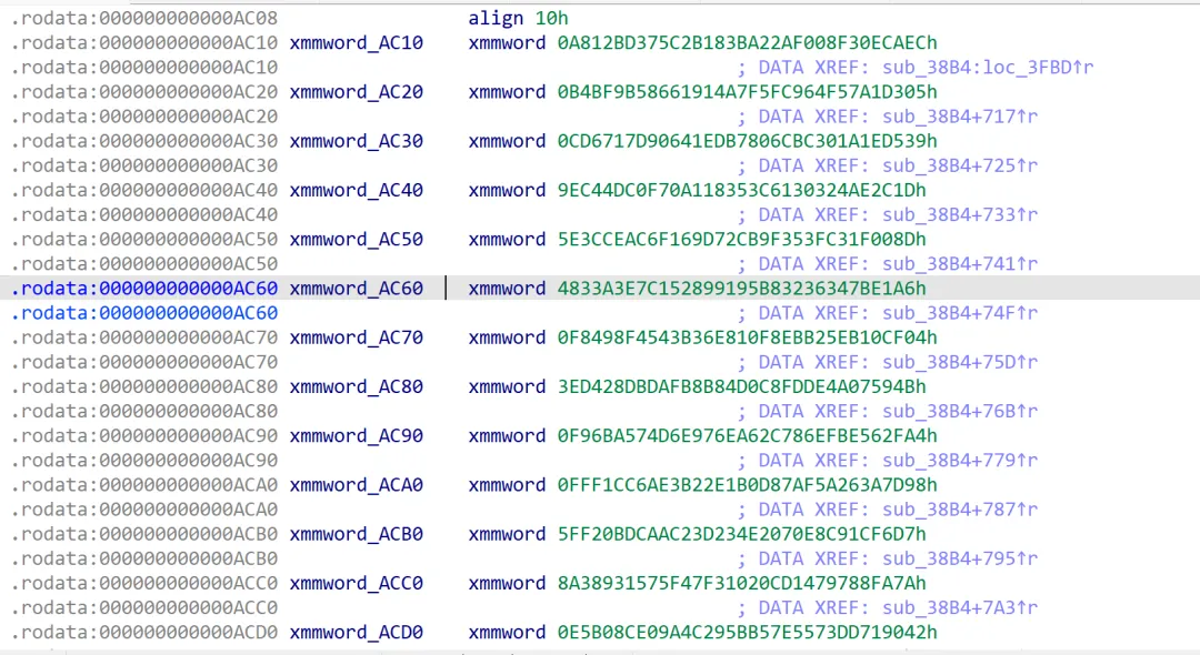 经分析,0xAC10 为 S 盒起始,0xAD10 为 FK,0xAD20 为 CK