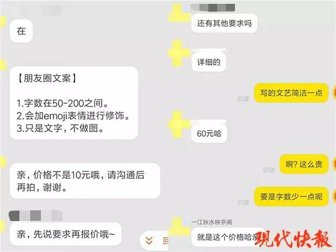 电商平台上的“朋友圈文案代写”服务