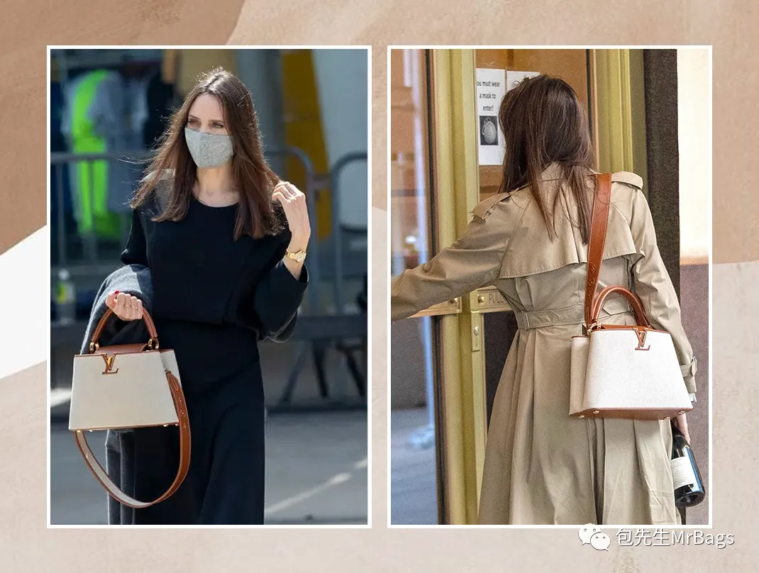 其实Soft 16本身大大的包身,就自带这种优雅随性的氛围。平日里既可以走慵懒休闲风,也可以走气质OL风,不管怎么搭都让人很有好感。最近超火的Saint LaurentIcare,朱莉也有背! 一身白色裤装搭配黑色Icare,朱莉用简单的黑白色调便将这只包的随性和高级感表现得淋漓尽致。比如在2013~2015年期间,她就一直在背Sac De Jour!硬挺的托特包超显气场,还有那么些酷劲儿,一看就特别适合她。最近几年呢,她又很喜欢背Manhattan这只Shopping Bag。包包自带的摩登感和朱莉潇洒的风格有种浑然天成的契合度。 方正的包型搭配简约的设计,上身会感觉整个人非常干练、有气场。作为路易威登曾经的代言人,朱莉经常用各种Louis Vuitton的包包。还记得当年那组广告大片里面,朱莉就背着一只老花的托特包Alto,让人印象特别深刻!放到近几年,朱莉日常出街的时候比较爱背Capucines。她选择的这款是帆布拼棕色皮质的Capucines,非常适合她本人简简单单的穿搭风格,看上去优雅又高级。Capucines在路易威登中算单价比较高的包款,定位也更偏向于贵妇级。如果你是公司的管理层,那Capucines这种低调奢华、又显气质的包款就非常适合你~可能很多人心中,Dior的包包一直都给人非常白富美的印象。但其实,骨子里自带优雅气质的Dior,也有很多包款非常凸显气场,很适合大女人或者通勤一族!Dior Caro、St. Honore、Bobby