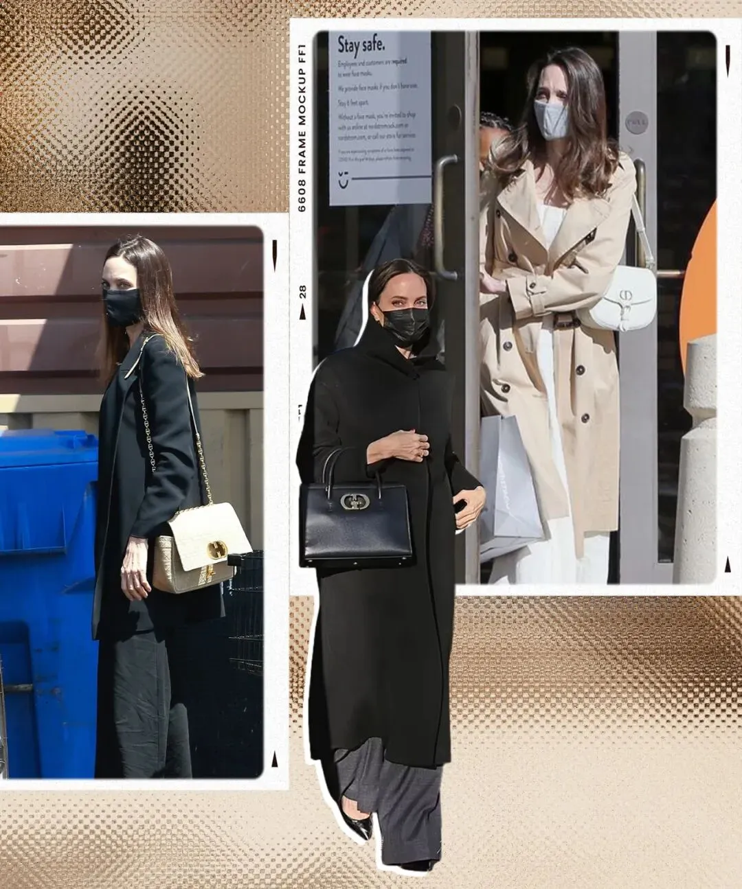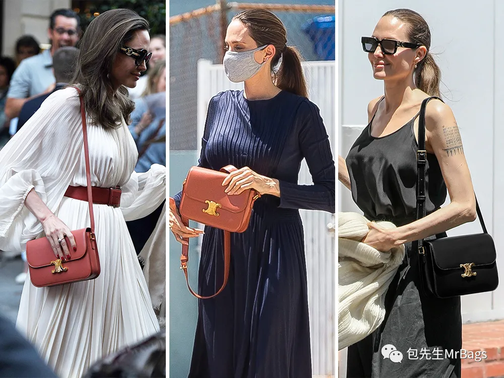 近几年,朱莉则经常背她各种颜色的Triomphe出门。简洁经典的设计,更能衬托出朱莉高级优雅的气质,而且朱莉搭配的服装看着也很赏心悦目,跟手里拿的包款堪称绝配!日常出门时,朱莉也曾经背过Celine的托特包,大大的容量通勤用起来很合适。包身表面的黑白刺绣凯旋门图案,也为包包注入了一份辨识度和摩登感,搭配风衣显得好有气场哦!现在好多女生都说,Ferragamo真是个宝藏品牌!因为好多人入手后发现,菲拉格慕的质感真的太优秀了。虽然包包款式潮流性不一定很强,却很有经典相,日常背不太担心过时的问题。比如安吉丽娜·朱莉上身的这款Studio,就特别适合通勤!包身又是这样很规整的设计,没有什么多余的装饰,只有正面有个闪亮的Gancini锁扣,很凸显皮质的质感。小小的金属锁扣点缀在大大的包身上,就会给人一种很低调的感觉,但同时又极具辨识度,稳重而不失棱角,很显气场!