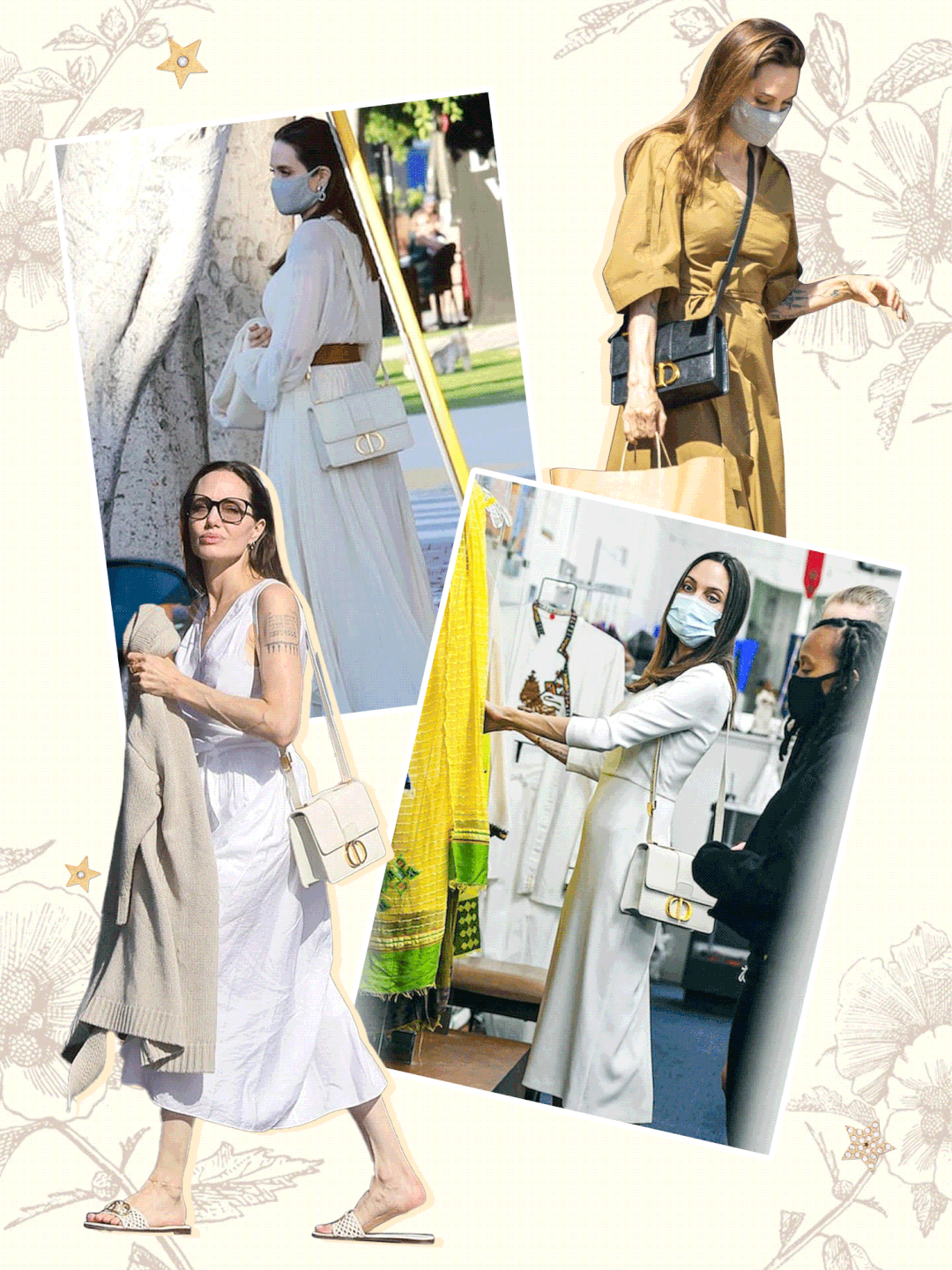 朱莉私下最爱背的包包之一,就是30 Montaigne!爱到黑色、白色各有一只!经常会看到她用这只包搭配不同造型。