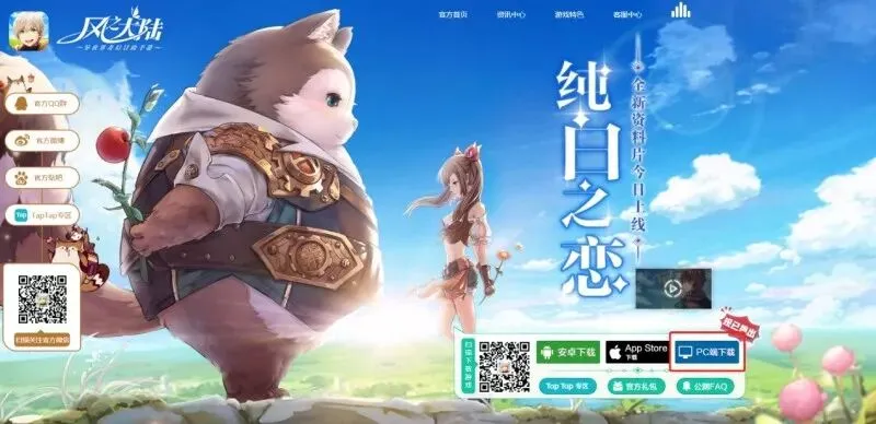 △ 登陆《风之大陆》官网,选择“PC端下载”
