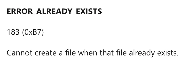 可以看到,创建这个名字的互斥体后,随后又调用了GetLastError函数,并返回了0x000000b7,查看手册,其含义: