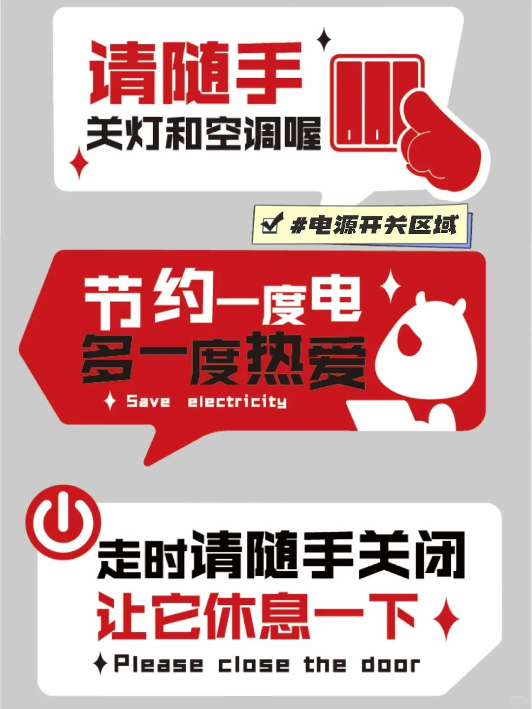 随手关灯、关空调、关设备,看着是小事,攒下来都是真金白银。用一句轻松的话提醒大家,既不会觉得被说教,还能帮公司省电费,一举两得