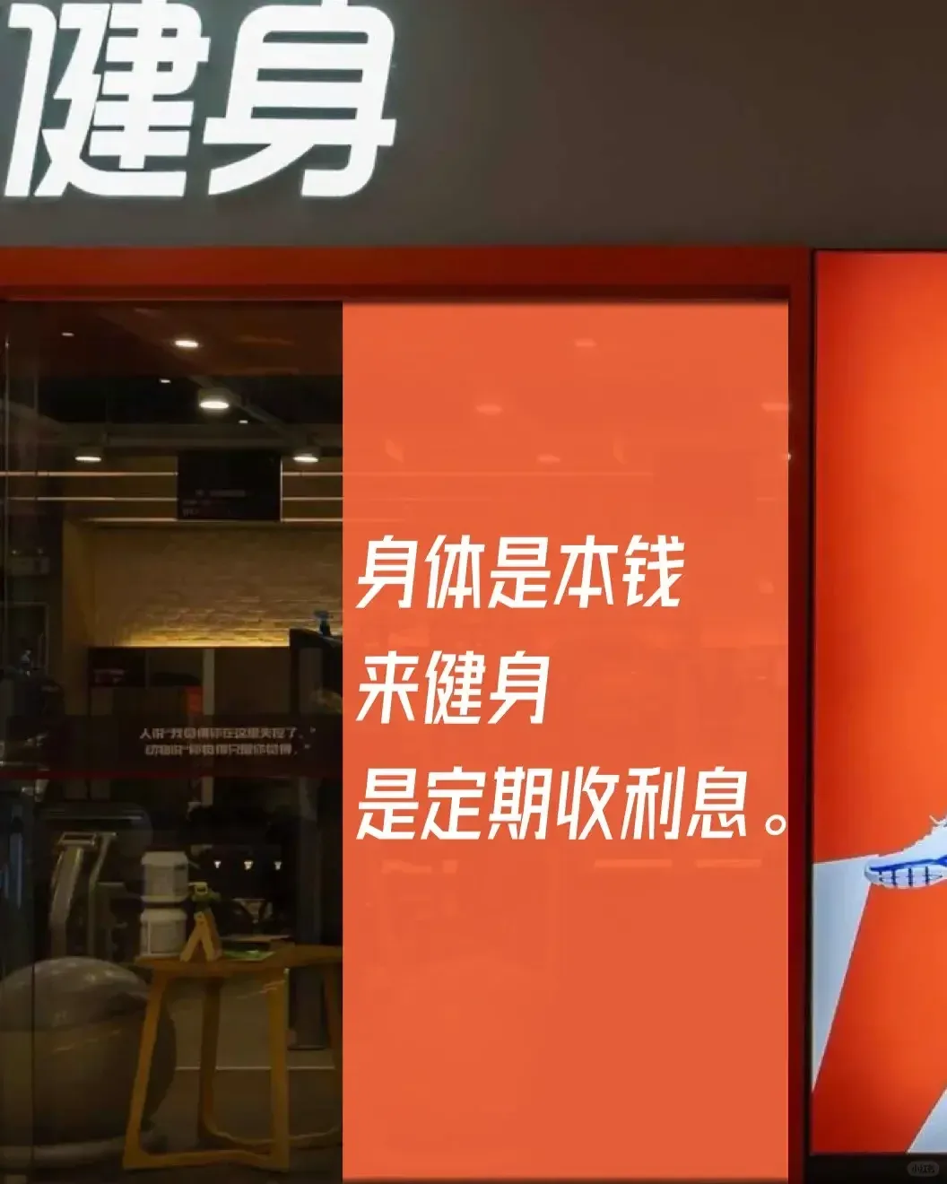 健身房的标语主打一个鼓励大家利用碎片时间动起来。