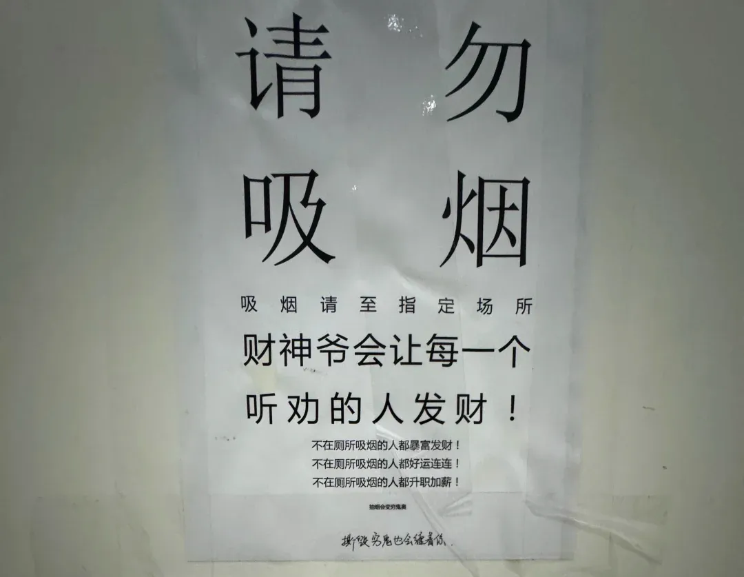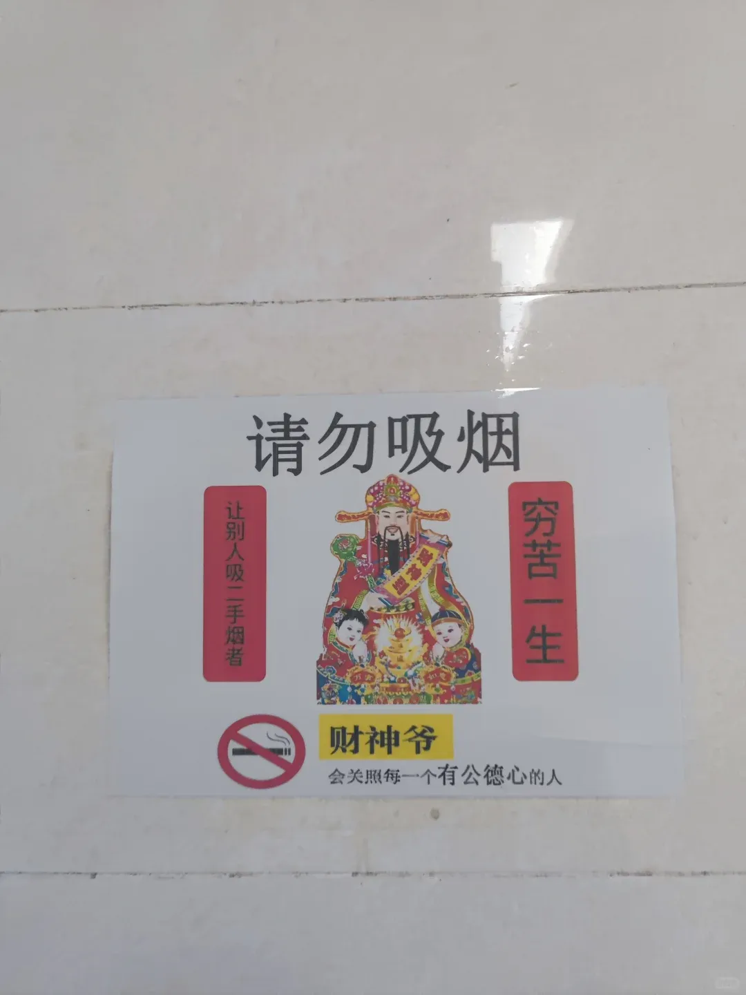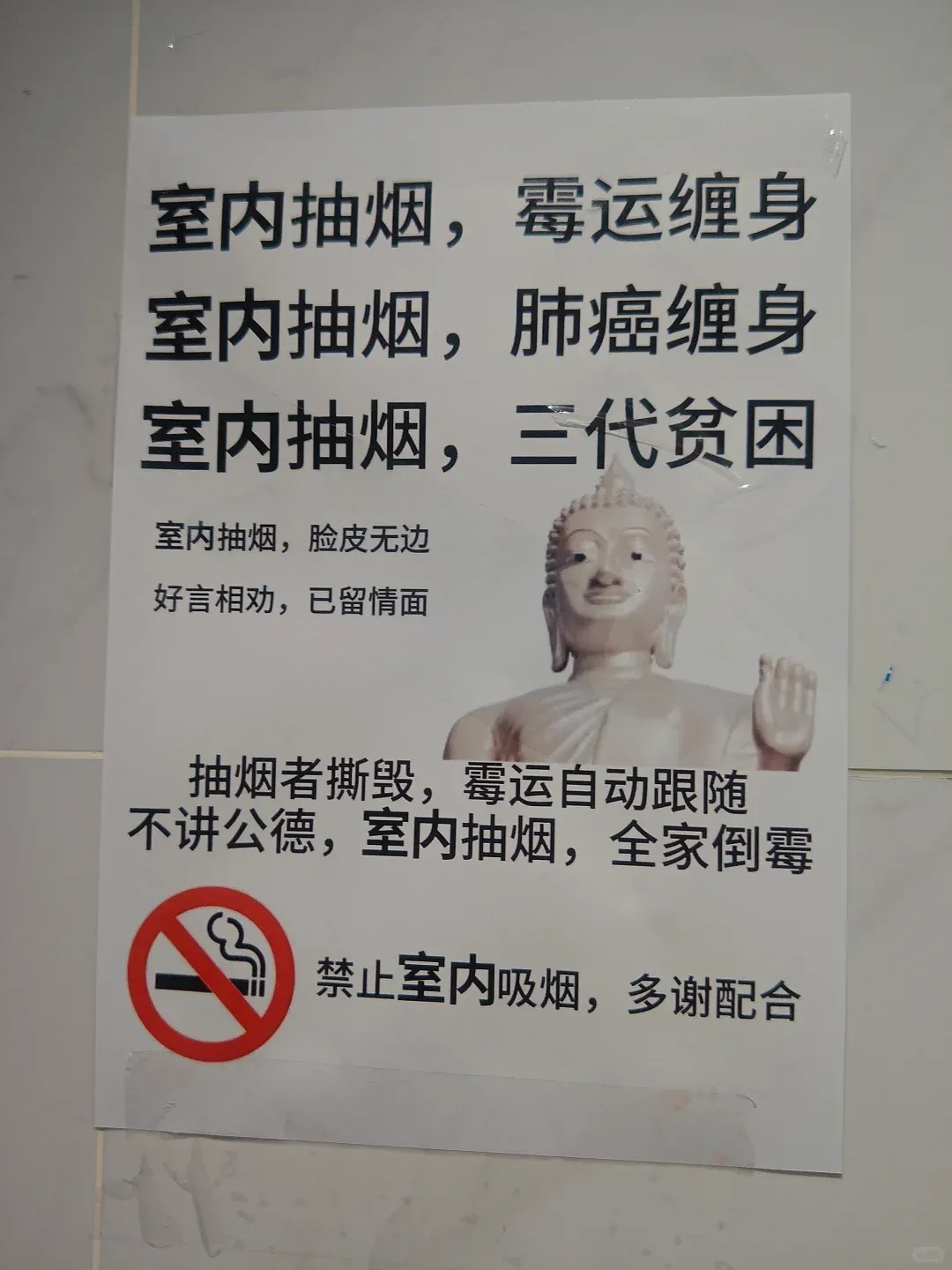 禁烟一直是让行政头疼的事,贴了标语也很容易被忽视。可以从玄学的角度出发,试试这几个“邪修”标语: