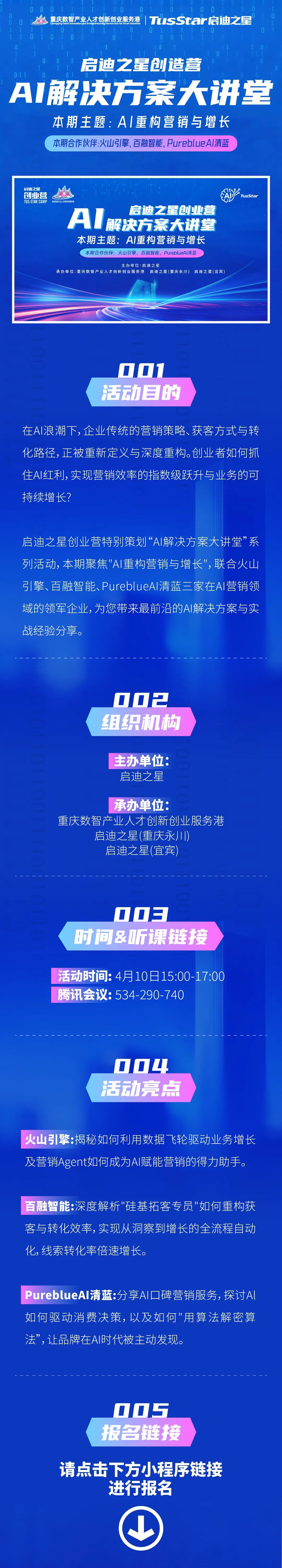 活动预告 | AI大讲堂来了:火山引擎、百融智能、PureblueAI清蓝三大平台营销工具实战教学