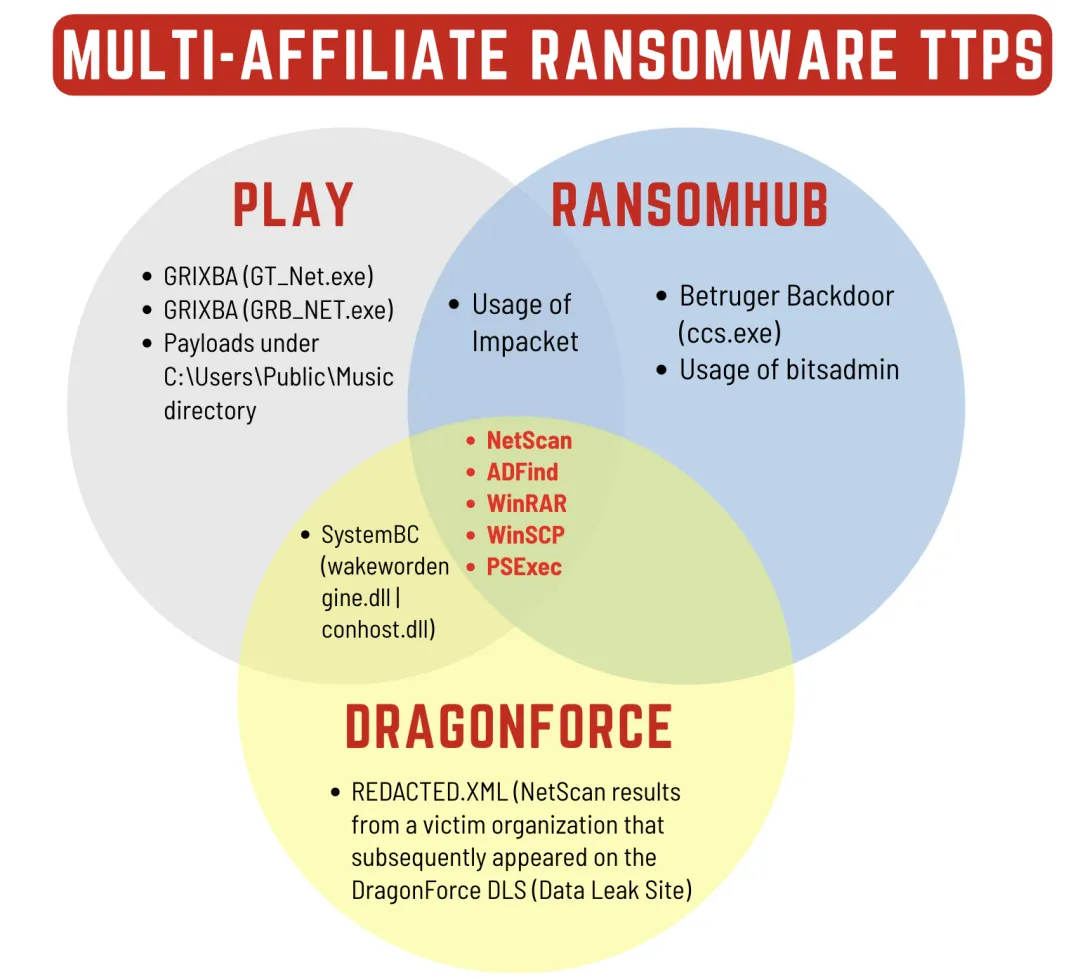 关键洞察:这一发现表明,勒索软件生态系统中的"附属成员"并不一定忠于单一组织。同一名攻击者可能同时在多个 RaaS(勒索软件即服务)平台上运营,根据目标环境和收益最大化策略选择部署不同的勒索软件。这种"多栖"模式对威胁情报归因和防御策略提出了新的挑战。