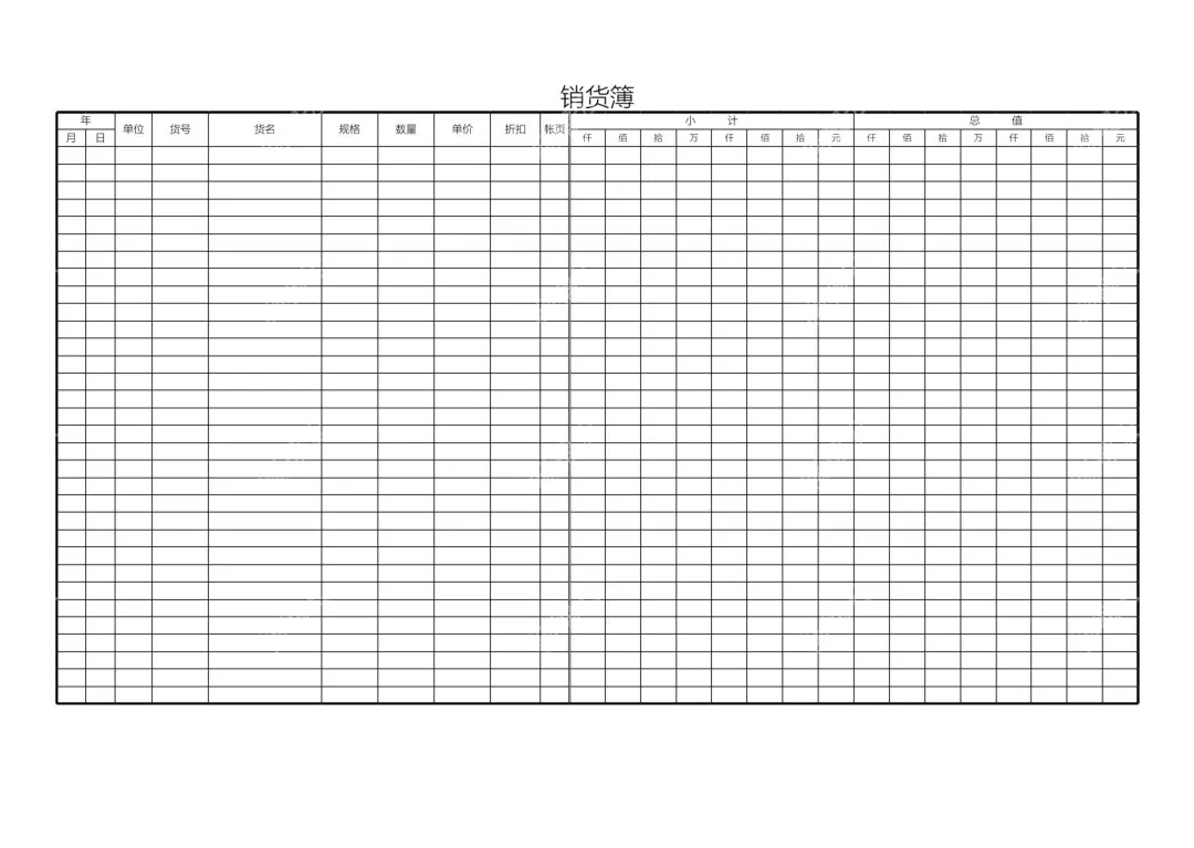 本文档是一份规范的销货簿记账模板,旨在帮助商户、财务人员高效记录销货明细。模板包含年、月、日、单位、货号、货名、规格、数量、单价等核心记账字段,还设置了小计、总值的分级金额栏位,清晰划分仟、佰、拾、万等金额层级,便于精准核算。无论你是个体工商户还是小型企业财务,这份模板都能帮你规范销货记录流程,提升账目整理效率,轻松完成销货数据统计与核对。