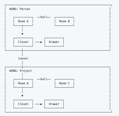 MemPalace 的思路完全不同。它真的把"记忆宫殿"的空间隐喻做成了一套可导航的数据结构: