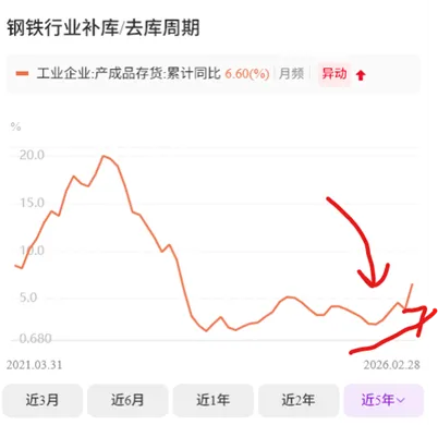 钢铁行业已经从去库存阶段进入到主动补库存的阶段,库存数据的上涨(如图)标志着全社会对钢铁钢材的需求量持续增加,但钢铁价格却没有明确的上涨,表示钢铁行业需求还没有增长到超过当前全社会供给的时候,如果投资这个方向,还需要等待一个信号出现,那就是钢铁价格的持续上涨。