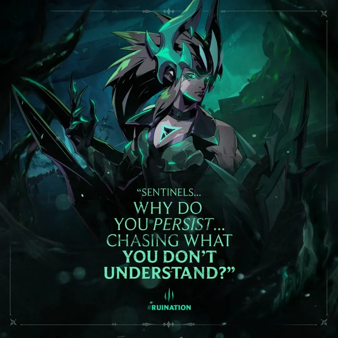 还有一位半神:不屈之枪·潘森。他好像被佛耶戈黑化了,因为官方贴出了疑似为破败军团主题的皮肤原画加技能演示。
