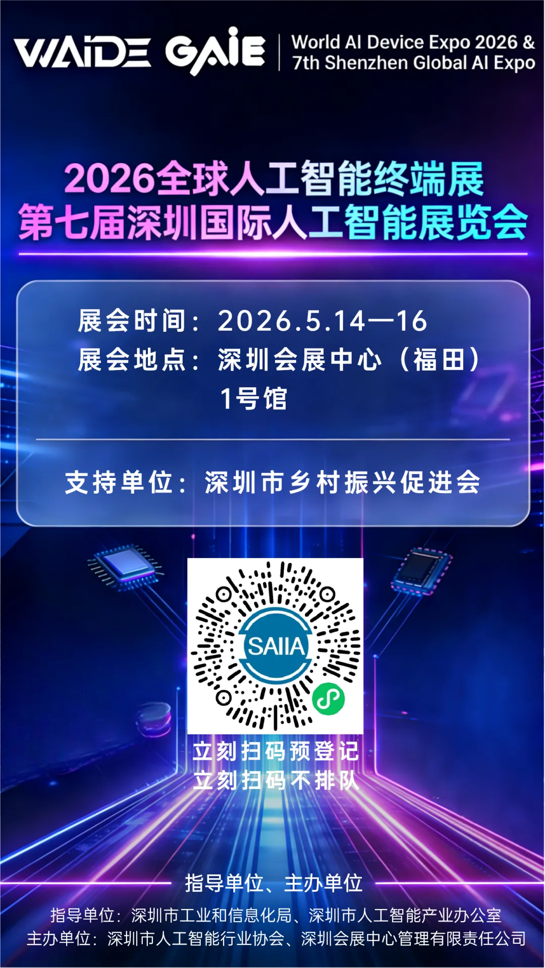 2026全球人工智能终端展暨第七届深圳国际人工智能展览会(GAIE 2026)将于2026年5月14—16日,在深圳会展中心(福田)1号馆盛大启幕!