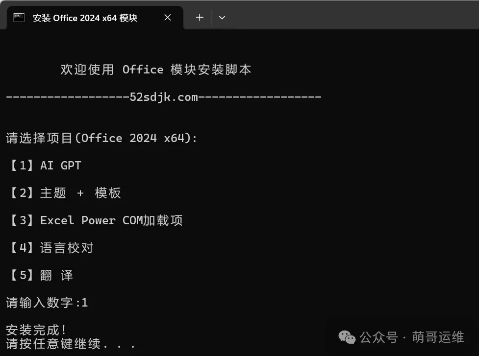 需要安装哪个模块就输入对应的数字,然后按下键盘【enter】键,等待一会即可
