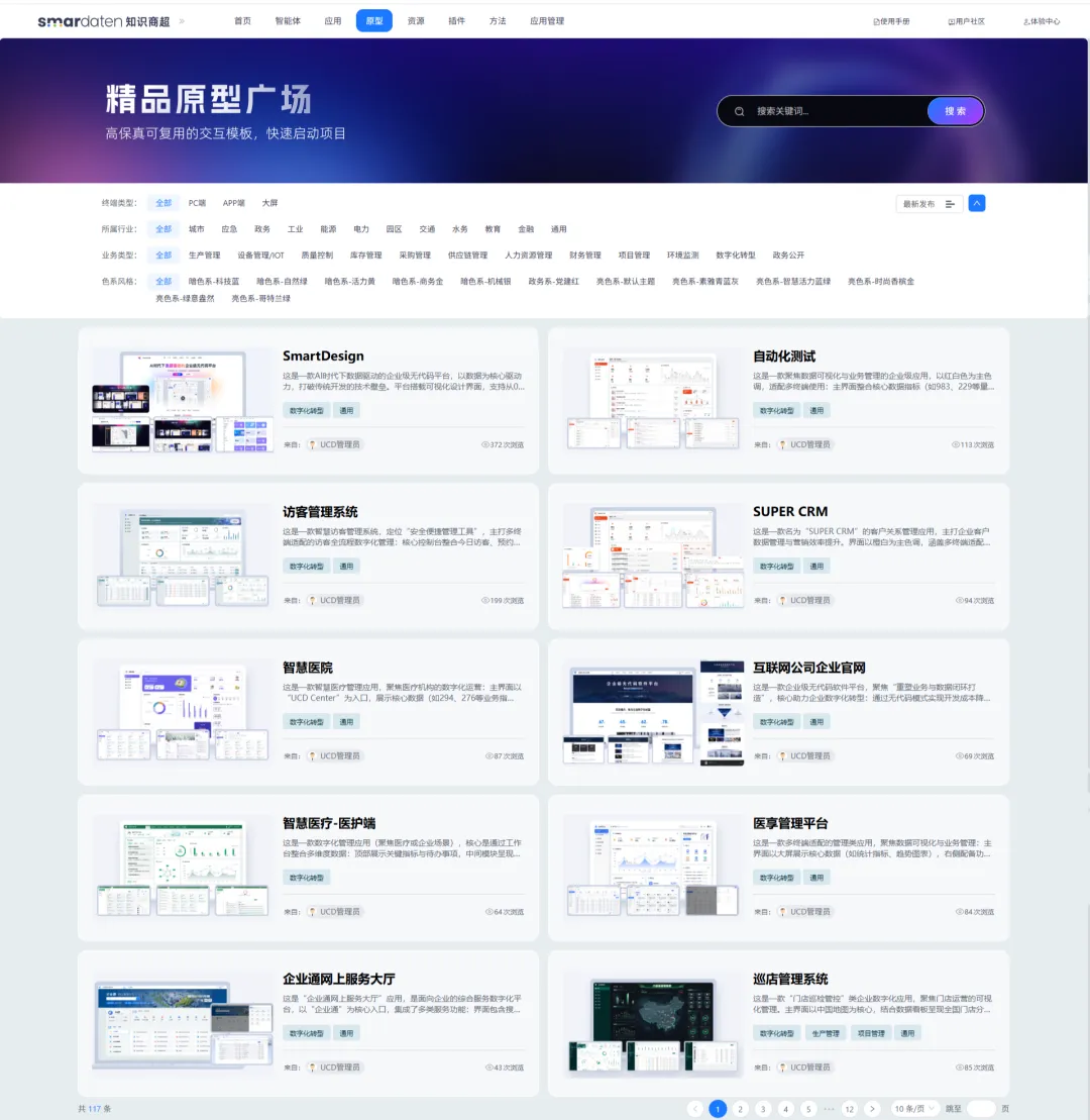 原型模块提供功能模块与页面布局模板,涵盖常用业务模块、典型页面结构、表单布局、列表页、详情页等可直接复用的设计资产。